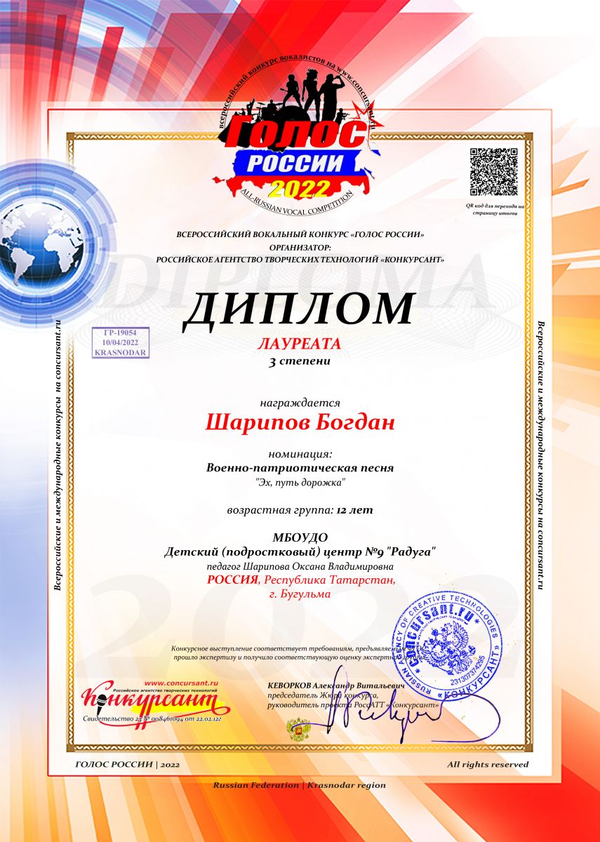 3 место, Всероссийский, Голос России, Шарипова О.В.jpg
