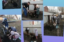 Совместная деятельность детей и взрослых доставила массу приятных моментов каждый вносил свой вклад в озеленении территории. Дети с большим удовольствием помогали взрослым капать ямки, носить воду, придерживать саженцы .