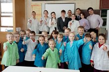 Ученики 10 класса и педагог химии Людмила Алексеевна Незнанова встретили малышей в самом удивительном кабинете школы – кабинете химии. Старшеклассники рассказали о науке химии и, конечно, показали волшебство - занимательные опыты. Наши подготовишки узнали, что дым без огня вопреки пословице все же бывает, что пламя может быть разного цвета, что при смешивании различных элементов можно увидеть что-то интересное, в том числе «Извержение вулкана». Малыши познакомились с химической лабораторией, посудой для опытов, кислот и реактивов. Наши юные исследователи с большим интересом слушали своих «учителей», задавали вопросы и даже сами попробовали себя в роли химиков - провели при поддержке старших товарищей свои первые опыты с использованием химических элементов. Это была одна из самых интересных частей нашей экскурсии в школу, ведь в таком возрасте все хочется попробовать самим.
