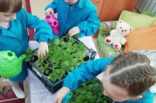 Воспитанники старшей и подготовительной групп провели акцию «Зелёный росток» по посадке рассады цветов. Дети совместно с педагогами распикировали около 300 корней цветочной рассады. Цель акции: воспитание у дошкольников уважительного отношения к природе, чувство ответственности за всё живое на земле; привлечение детей к помощи взрослым; активизация деятельности детского сада по благоустройству и озеленению территории, создание комфортных условий воспитания и развития детей дошкольного возраста.