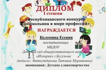 Поздравляем Коломину Есению, воспитанницу старшей группы, с победой в Республиканском конкурсе «Дошкольник в мире профессий» в номинации «Детское слово»
