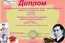 Поздравляем Сарию Фесаховну и Фанию Ришатовну с победой в Республиканском конкурсе, посвященном поэту – герою М. Джалилю «Мужество останется в веках»