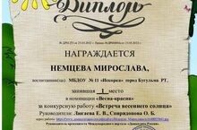 Поздравляем Немцеву Мирославу с победой в международном конкурсе в рамках «Года культурного наследия народов России – 2022» в номинации «Весна – красна»