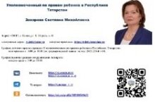 Уполномоченный по правам ребенка в Республике Татарстан Захарова Светлана Михайловна