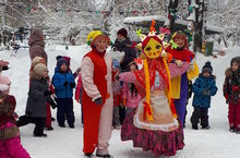 В детском саду в последний день зимы прошёл праздник "Масленица". Солнышко выглядывало из-за туч, и уже совсем по-весеннему пригревало наряженных детей. Ребята с румяными щечками, в ярких платках кружились в хороводе, завлекая в весёлую пляску весь детский сад, а затем играли в веселые русские народные игры. Детские глаза выражали восторг, а на лице сияла улыбка от ярких эмоций праздника. В завершении детей ожидали вкусные блины и горячий чай. Повсюду царила атмосфера радости и веселья. Веселым и задорным праздником зиму проводили! Будем ждать весну!!!