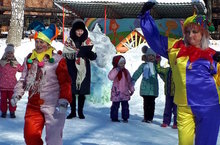 Любимые персонажи детей, скоморохи, устроили веселые масленичные забавы. Дети соревновались в смелости и находчивости, силе и ловкости, смеялись над шутками скоморохов.