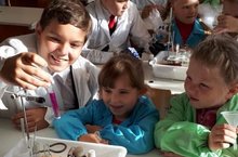 Необычный урок химии прошёл в школе № 5 для воспитанников детского сада. Дошколята и ученики, все как один, облачились в халаты, познакомились с правилами поведения и техникой безопасности в кабинете химии. Самой приятной и увлекательной частью встречи стало знакомство маленьких гостей с химическим оборудованием: пробирками штативами, колбами и мензурками. Дети с большим удовольствием ассистировали ученикам: взвешивали миллиграммы сухих препаратов, смешивали жидкость в колбочках и следили за изменением состава раствора, увидели чудесные свойства водорода, марганца и других химических составов, научились менять цвет жидкостей, сравнивать, делать выводы. Занимательные уроки с опытами дают возможность дошколятам познакомиться с такими науками, как химия, физика, математика, астрономия на привычном им языке игры.