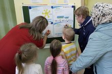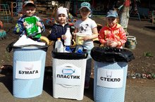 На территории детского сада были установлены контейнеры для раздельного сбора мусора. Родителям и детям было предложено разделять отходы по видам для того, чтобы их можно было перерабатывать, а не выкидывать. Дети узнали, что отходам можно дать ворую жизнь. Из макулатуры можно получить ксероксную бумагу, пазлы; из пластиковых бутылок – тазы и даже детские горки; из стекла – стекловату, тарелки, душевые кабины.