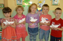 Каждый год с приближением майских праздников необъяснимое чувство боли, тревоги и гордости за свой народ испытывает душа. Ведь Великая Отечественная война прошла ломаной линией по судьбам многих семей.Задача родителей и педагогов не забыть истории о ВОВ и передать нашим детям, чтоб и они знали и помнили, какой ценой была завоёвана Победа.Со школьниками немного легче. А как быть с теми, кому 4-7 лет? Как рассказать о войне дошкольникам, имеющим пока смутное представление об истории? Как донести в эти маленькие сердца столь непростую и взрослую тему? Стоит ли им рассказывать о том, сколько бед и несчастий принесла нашему народу война?Несомненно, стоит! Чтение детских книг о войне, беседы, рассказы, встречи с ветеранами, воспоминания близких, семейные реликвии естественным образом формируют у ребёнка историческую память, дают ощущение сопричастности далёким героическим событиям. Важно пробудить у дошкольников чувство сострадания к людям, прошедших и переживших войну, воспитывать чувство патриотизма и любви к своему народу и стране.26 апреля в нашем детском саду была проведена акция «Голубь мира», посвящённая празднику Великой Победы.Цель акции: воспитывать у детей чувство любви к Родине, гордости за свой народ; формировать представление о героизме; расширять представление о защитниках страны в годы Великой Отечественной войны.На предложение изготовить своими руками белых голубей - символов мира, добра и благополучия, откликнулись все дошколята старшей и подготовительной к школе групп. Голуби получились разного размера, формы, техник изготовления, но одно объединяло этих белых птиц - их делали дети с верой в мирное будущее и желанием, чтоб та страшная война, о которой беседовали с ними, никогда не повторилась. Понимая по-своему, по-детски, рассуждали: «Чем больше сделаем голубей, тем дольше не будет войны!»…Старались, вырезали и складывали. Просили: «Давайте ещё!»Педагоги, родители! Предлагаем ввести добрую традицию по изготовлению символов мира к каждому празднику Дня Победы.Пусть это станет наши детским «Мы помним...»! -