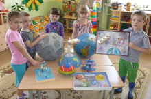 В детском саду прошли мероприятия, посвященные Дню космонавтики.Воспитатели вместе с детьми ответственно готовились к 12 апреля. Дошкольники рассматривали иллюстрации, лепили «спутники», мастерили ракеты, учили стихи о Ю. Гагарине, смотрели мультфильмы: «Белка и Стрелка», «Тайна третьей планеты», читали книги.Так, воспитатели подготовительной группы провели физкультурный досуг для детей старшего дошкольного возраста «Тренировка будущих космонавтов». Конечно, будущие космонавты должны тренироваться, чтобы быть физически крепкими и здоровыми. Космос для сильных и выносливых. Поэтому на тренировочной базе дети показали, как надо делать зарядку, если хочешь полететь в космос, а экипажи «Метеор» и «Салют» соревновались в умении ловко прыгать с парашютом - зонтиком, в умении вести себя в невесомости. Чтобы стать космонавтом, надо не только быть здоровым, но, главное, знающим человеком. Для полёта в космос надо изучить много наук: и физику, и математику, и астрономию. Будущие космонавты отвечали на вопросы о космосе, космическом пространстве, показали свои знания об истории освоения космоса, доказав, что они могут совершать космические путешествия.И конечно, космонавтов, которые побывали в космосе, всегда награждают самыми высокими наградами: орденами России! А юных космонавтов наградили за подготовку, за силу и смелость звёздами.Воспитатели средней группы провели познавательное занятие «Полет в космические дали». Предложили своим воспитанникам «запустить» ракету в космос - нарисовать пальчиками звезды, совершили межпланетное путешествие. Дети побывали на разных планетах, выполняли различные задания, чтобы быть смелыми и отважными, как первый космонавт Ю. Гагарин.Воспитанники старшей группы познакомились с летательными космическими аппаратами, попытались ответить на вопрос: «Зачем люди летают в космос?». С интересом играли в игры: «Ракетодром», «В космос с Ю. Гагариным». -