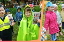 Итоговым мероприятием прошла эстафета среди старших групп " Веселые старты на самокатах", а ребятишки 9 и 10 группы провели акцию " Стань заметный на дороге".