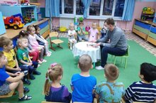 Вчера в гости к ребятам средней группы приходил папа Алёны Дадаевой, Данила Игоревич. Он рассказал детям познавательные истории про динозавров, провел беседу про микробы, поиграл в игру, просто и непринуждённо прошел вечер у детей