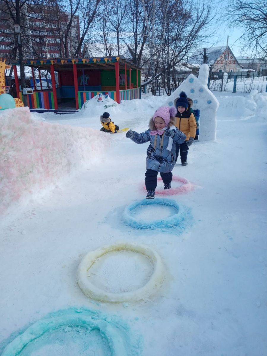 Детям очень нравится гулять на зимнем участке, а с постройками интереснее вдвойне.