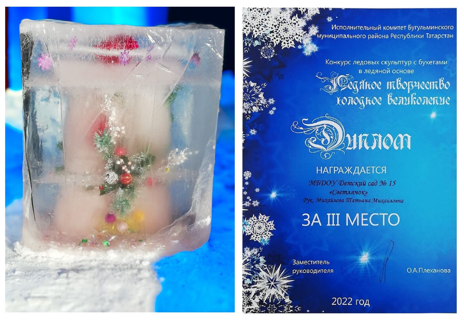 Поздравляем с 3 местом в конкурсе ледовых скульптур «Ледяное творчество–холодное великолепие»!