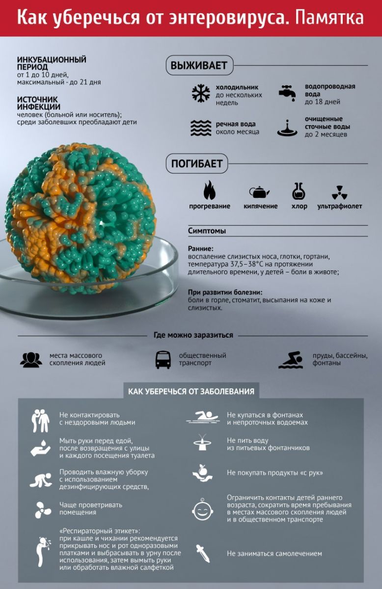 Управление Роспотребнадзора по РТ информирует о сложившейся напряжённой ситуации по энтеровирусной инфекции (ЭВИ), как в России, так и по Республике Татарстан. Заболеваемость формируют дети, на долю которых приходится 94% от общего количества случаев ЭВИ. Сезонный подъём заболеваемости продлится предположительно по октябрь месяц включительно.