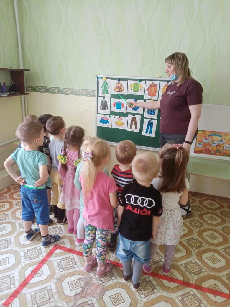 В ходе организованной образовательной деятельности педагог продолжала знакомить детей с названием одежды по временам года.