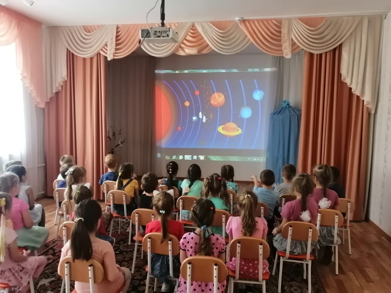 В честь 60-летия со дня первого полёта человека в космос в группе "Звёздочки" (воспитатели: Ильина С.А., Тихонова К.Б.) были проведены мероприятия, целью, которых было закрепление представлений о космосе, о первом человеке, полетевшим в космос. Благодаря просмотру познавательных видео-сюжетов, дети повторили названия планет солнечной системы и узнали какие особенности присущи каждой.