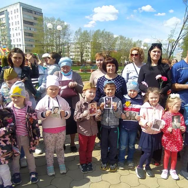 Исходя из этого, 7 мая 2021 года воспитанники старшей группы «Ягодка» (воспитатель Калинина Н. А.) вместе со своими родителями пришли в детский парк на мероприятие, приуроченное к празднику День Победы.
