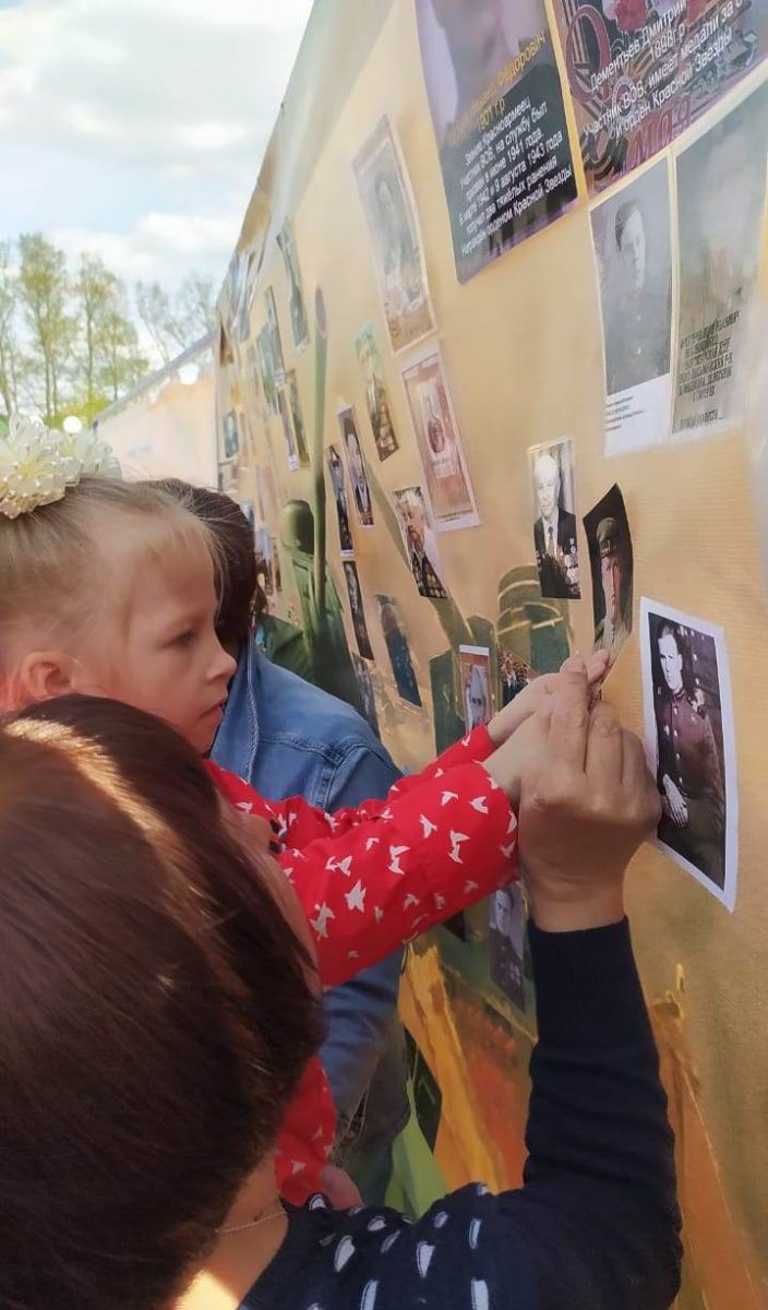 Во время происходящего ребята узнали о событиях Великой Отечественной войны, о том, какой ценой досталась эта великая Победа; почтили минутой молчания павших против фашизма, наклеили на стену Памяти портреты своих родственников — участников войны.