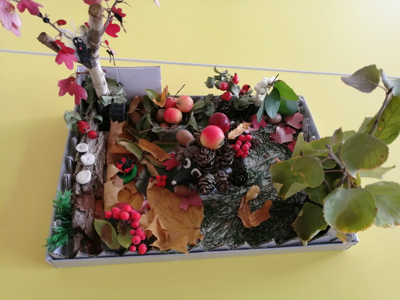 Дети и родители с большим удовольствием несли в детский сад поделки из природного материала, изготовленные совместно, своими силами. Материал для конкурсных работ использовался самый разнообразный: овощи, веточки, кора деревьев, ягоды, семена, трава, мох. Ах, сколько творчества, фантазии, выдумки!