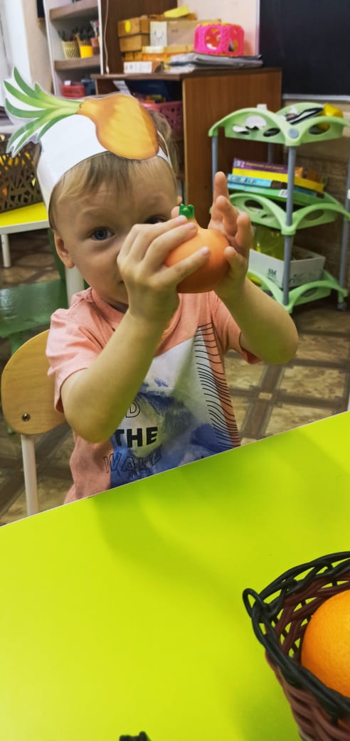 В течение недели ребята знакомились с осенними дарами. Учились называть овощи и фрукты. Играли в дидактические игры: "Разложи овощи и фрукты по корзинам", "Узнай по описанию".