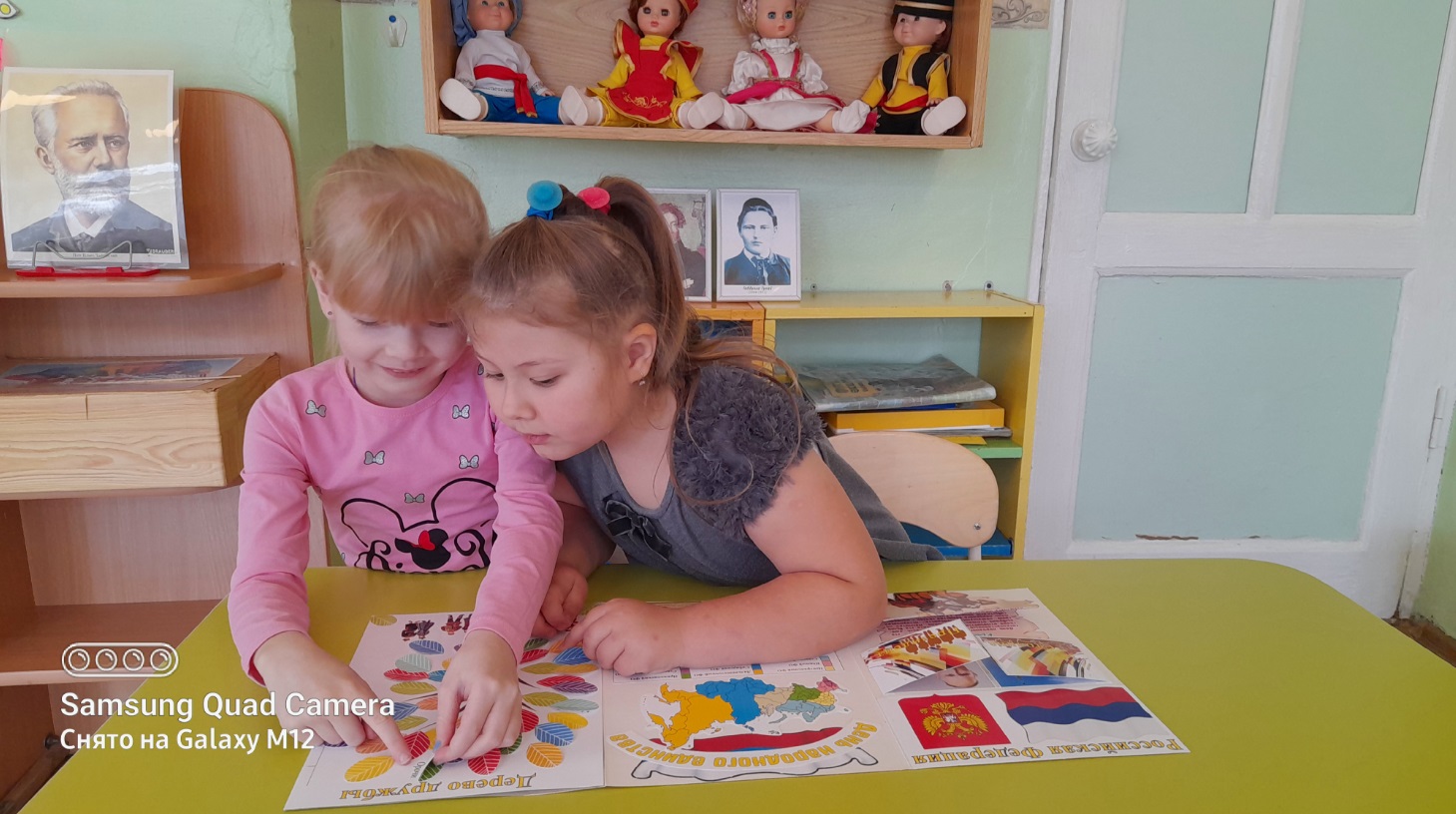 В течение недели мы с воспитанниками беседовали о России, о её символике, рассматривали и изучали карту России, читали художественную литературу, раскрашивали раскраски. Смотрели презентацию «4 ноября — День народного единства». Говорили об истории праздника «День народного единства», «Что означает — народное единство?», «Кто такие Минин и Пожарский?». А также, оформили стенгазету «Хоровод дружбы», поиграли в дидактические игры «Собери матрёшку», «Назови герб».