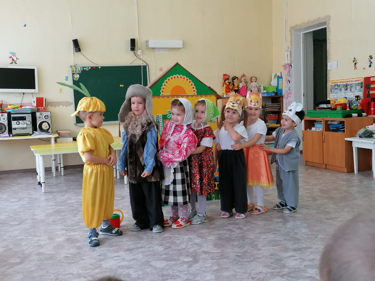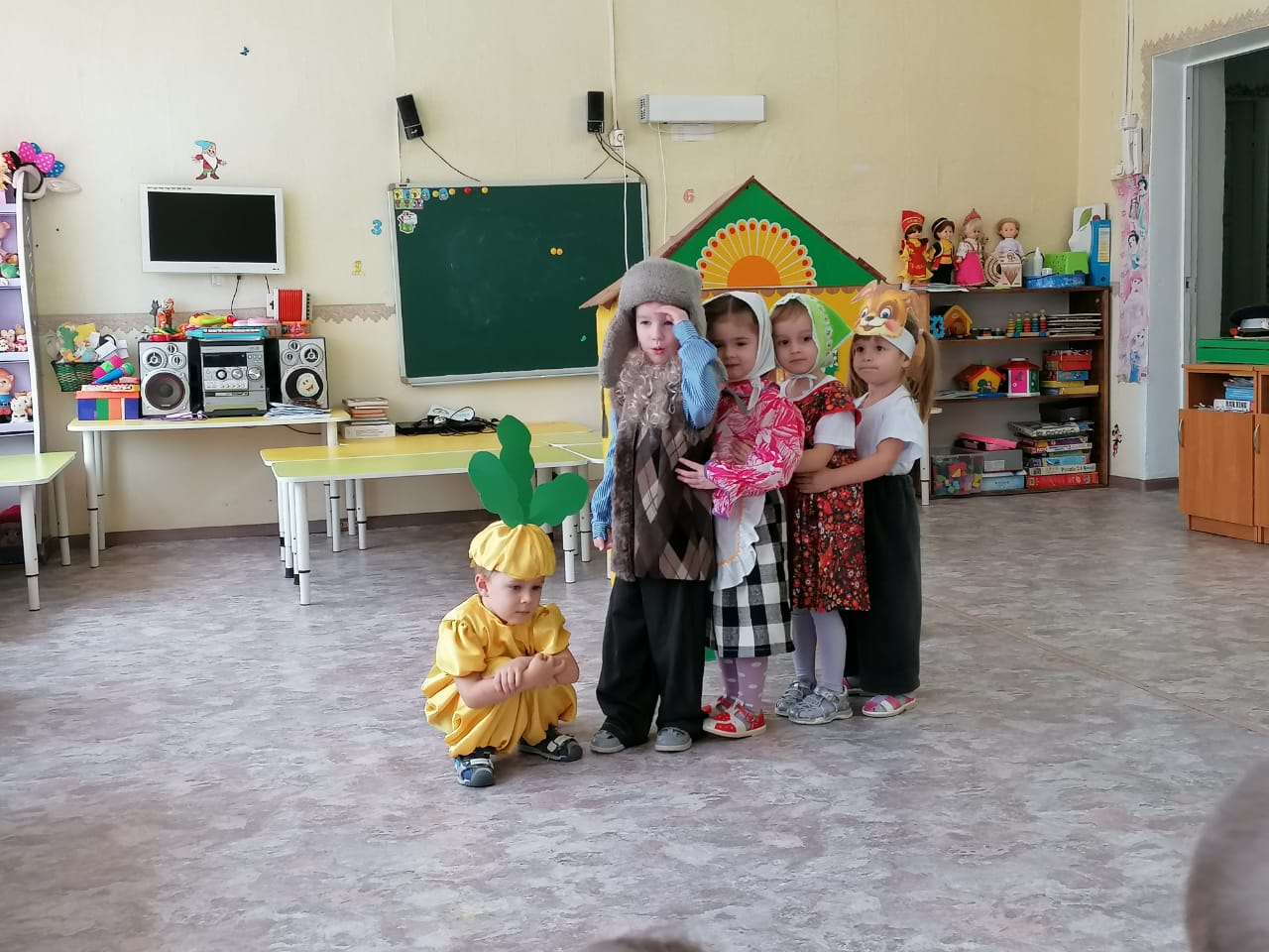 Воспитанники 2 младшей группы "Солнышко", показав сказку "Репка", рассказали о том, как дружба в семье помогла справиться с, казалось бы, непосильной задачей — лишь только объединив свои усилия они все дружно смогли вытянуть большую репку.