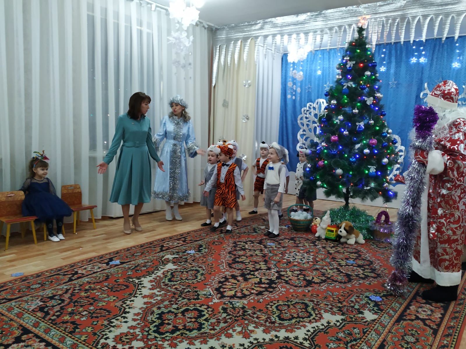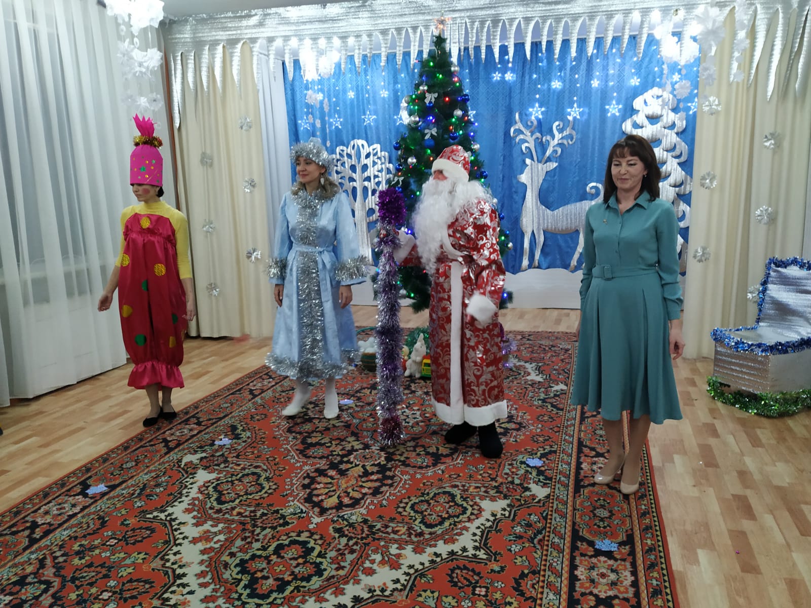 Сказочные герои (Хлопушка, которая рассердилась и забрала игрушки с ёлки, Снегурочка и Дед Мороз) участвовавшие в новогоднем представлении, проявили себя хорошими артистами, показав всё своё творческое мастерство, артистизм.