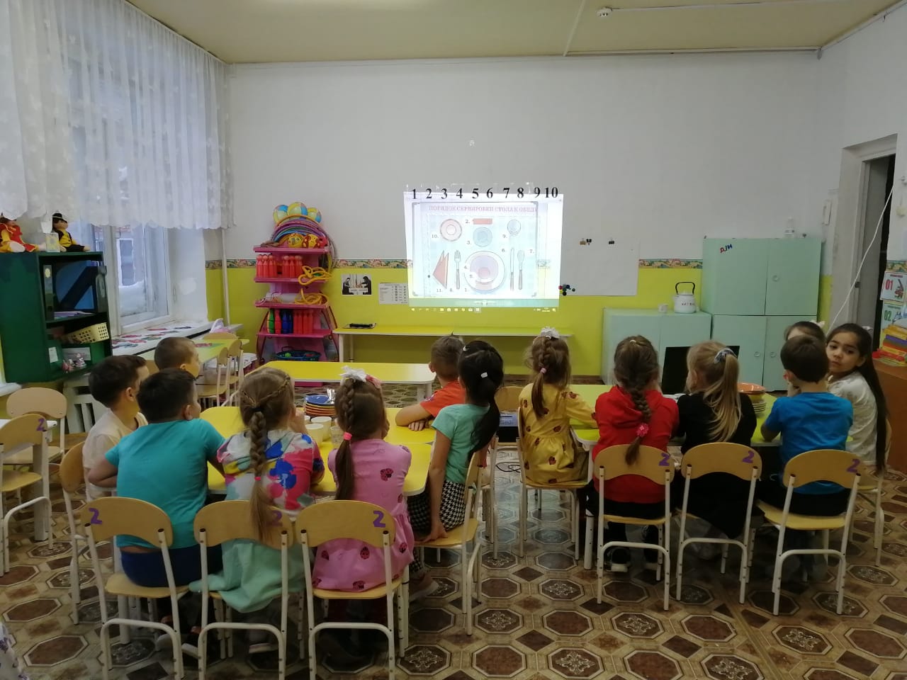Также познакомились с пословицами о вежливости: «Доброе слово согревает, дурное — огорчает», «Где слова привета, там улыбка для ответа», «Доброе слово — слаще мёда». Отдельно внимание уделили "Столовому этикету". Дети посмотрели как правильно сервировать стол к обеду, а также повторили правила столового этикета.