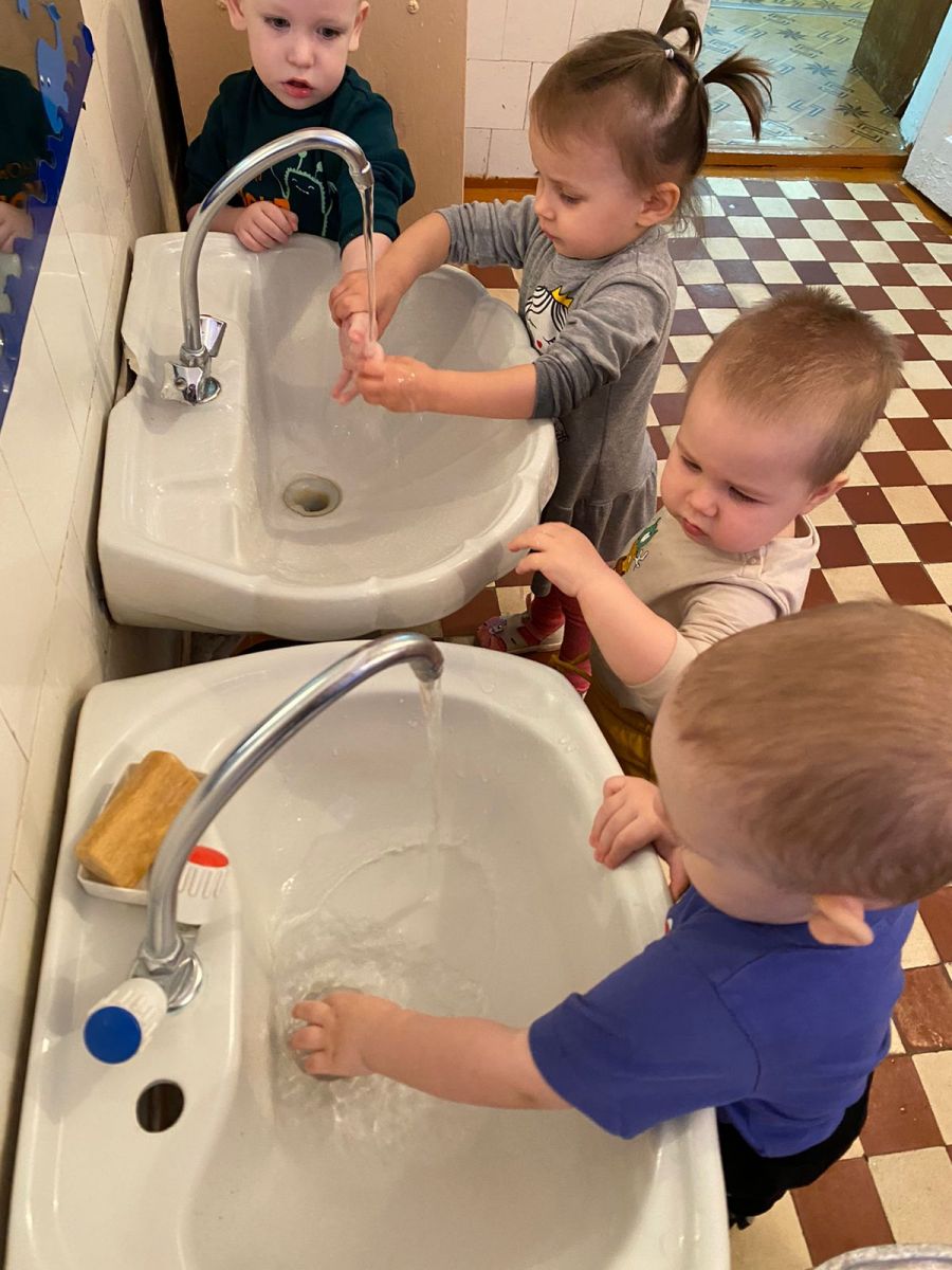 Детки знакомились с гигиеническими принадлежностями, старались самостоятельно умываться и мыть ручки с мылом.