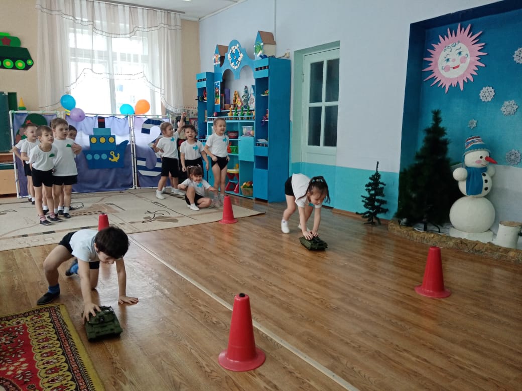 22 февраля в средней татарской группе «Ляйсан» (воспитатели Фаттахова Л.С., Ганеева З.Г.) прошла игра-соревнование «Сильные и ловкие», которая посвящена празднику День защитника Отечества. Дети были разделены на две команды «Танкисты» и «Летчики». Мероприятие проходило в праздничной атмосфере, в соревновательной форме. Танкисты и лётчики состязались в скорости, меткости и ловкости. Силы были равны у обоих команд. Победила дружба! Все были награждены сладкими призами.