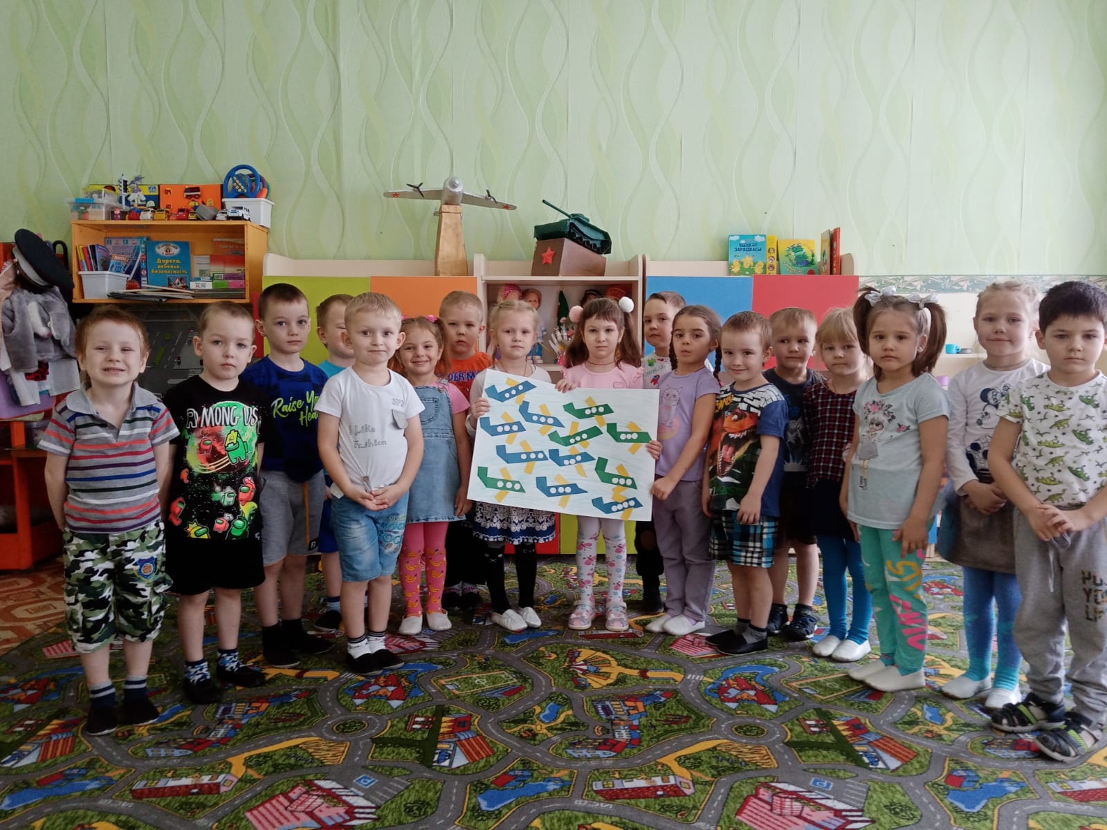 В течение недели в нашей группе проходили различные мероприятия: чтение художественных произведений, рассматривание картин, была выполнена коллективная работа в технике оригами "Самолёты".