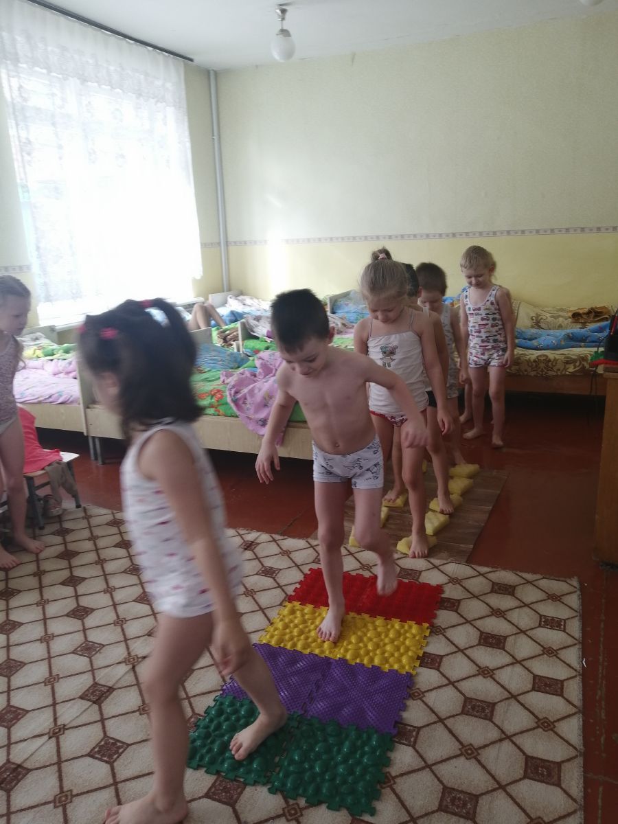 Дыхательные упражнения способствуют насыщению кислородом каждой клеточки организма. Дети выполняли гимнастику пробуждения, ходили по дорожке здоровья.