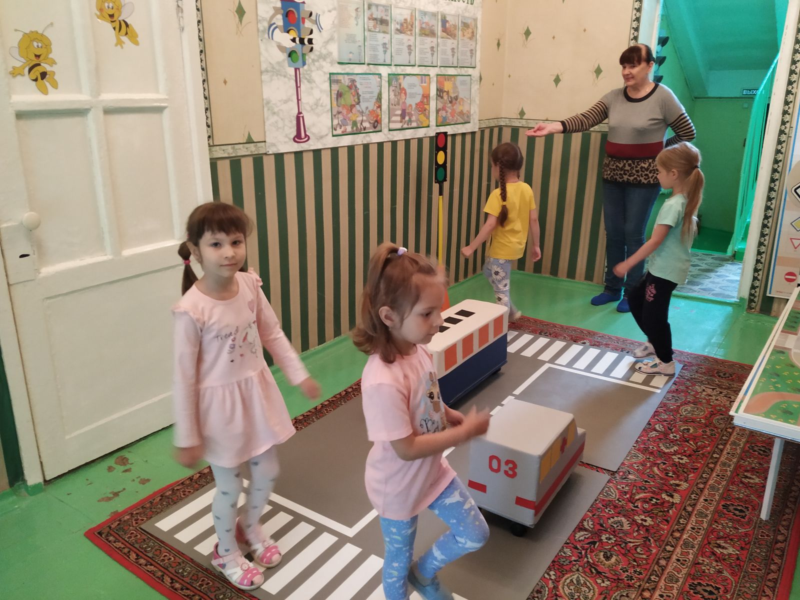 В течение недели с детьми проводили беседы и игровые ситуации «Правила безопасного поведения на улице», «Помнить обязан любой пешеход», «Наш друг — светофор», «Где играть положено», направленные на формирование первоначальных навыков поведения на улице и в транспорте.