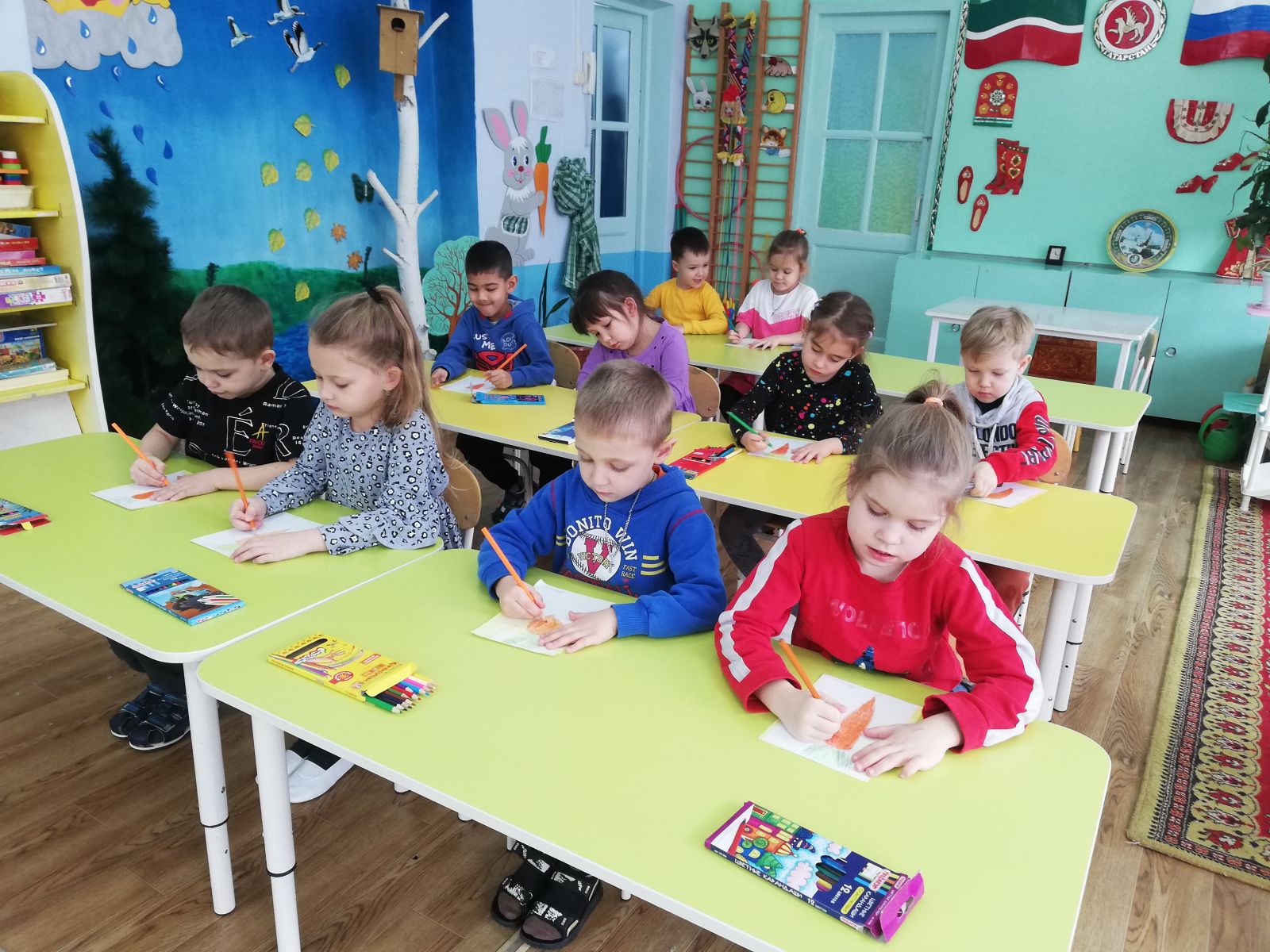 Балалар иҗат белән актив шөгыльләнделәр, рәсем ясадылар, пластилиннан әвәләп ясадылар, аппликацияләр ясадылар. Кызыклы хикәяләр һәм әкиятләр укылды: К. Ушинский “Дару”; в. Берестов “Авыру курчак”; К. Чуковский “ Мойдодыр”, “Айболит”, С.Афонькинның “ Ничек көчле булырга?” һәм “Нигә зарядка ясарга?” һәм башкалар. Спорт һәм сәламәтлек турында мәкальләр һәм әйтемнәр өйрәнелде. (“Тиз һәм җитезне авыру куып җитмәячәк”, “Сәламәтлек алтыннан кыйммәтрәк”, “Күбрәк хәрәкәт ит, озаграк яшәрсең” , “Җиде чирдән җәя”, “Сәламәт тәндә сәламәт рух” һ. б.)