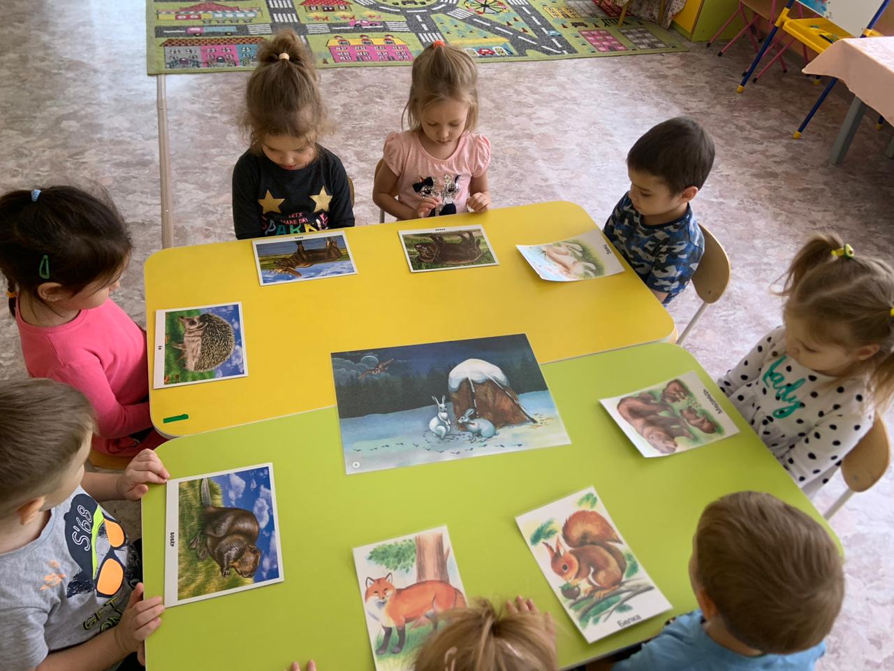 Педагогом была предварительная работа: наблюдение за изменениями и особенностями осенней природы (обсуждение таких явлений как заморозки, первый снег, сильные ветры, дожди, иней, туман); беседы об осени, о приспособленности растений и животных к изменениям в природе, о подготовке к наступающим холодам. Дети просмотрели презентацию по теме недели, отгадывали загадки, слушали стихи о животных; рассматривали картины с изображением диких животных, обсуждали их содержание. Слушали рассказы В.Бианки «Хвосты», «Тайна ночного леса», В.П.Краснопевцев «Как животные служат людям», чтение сказки Г. Скребицкого «Всяк по-своему».