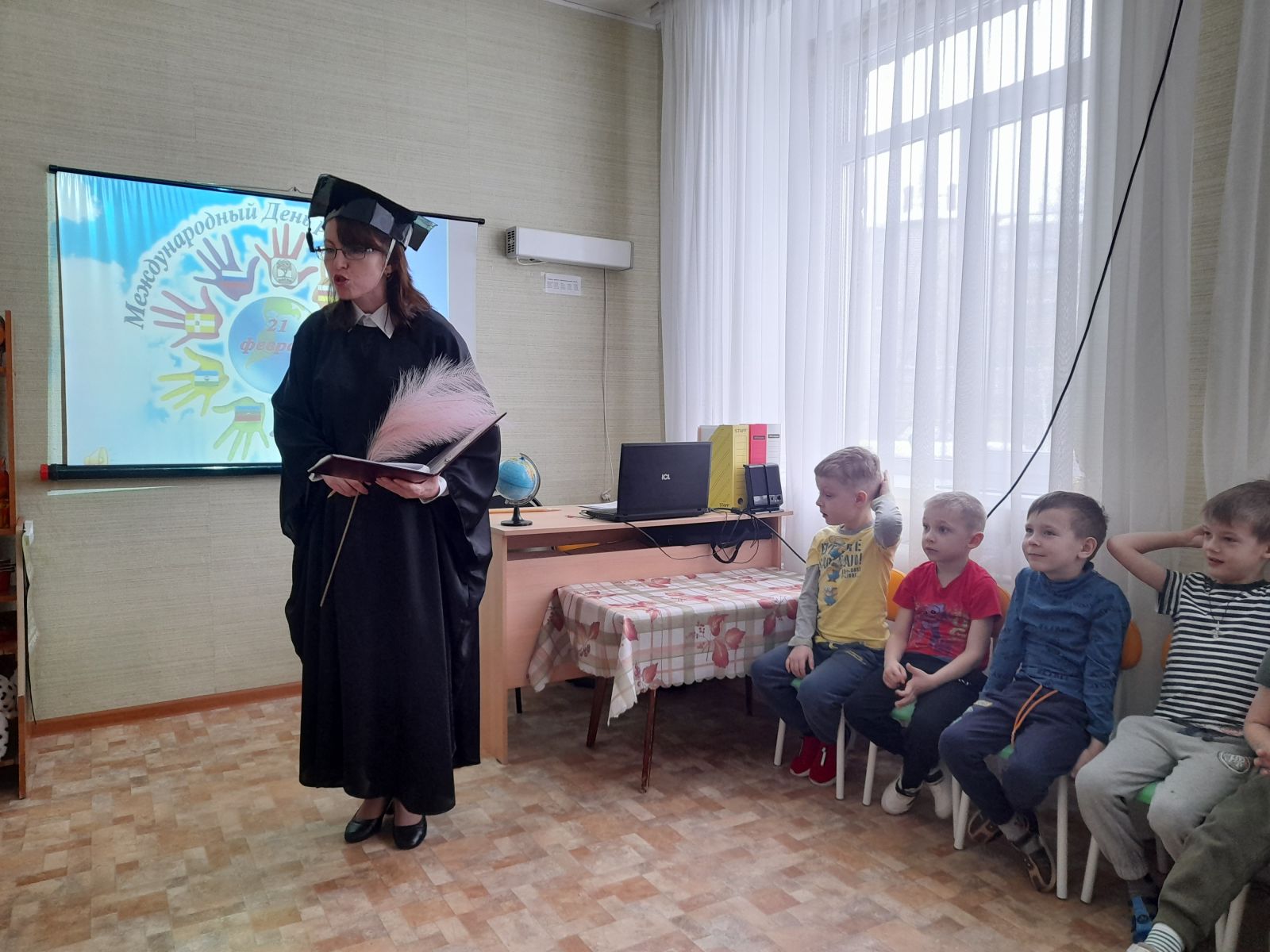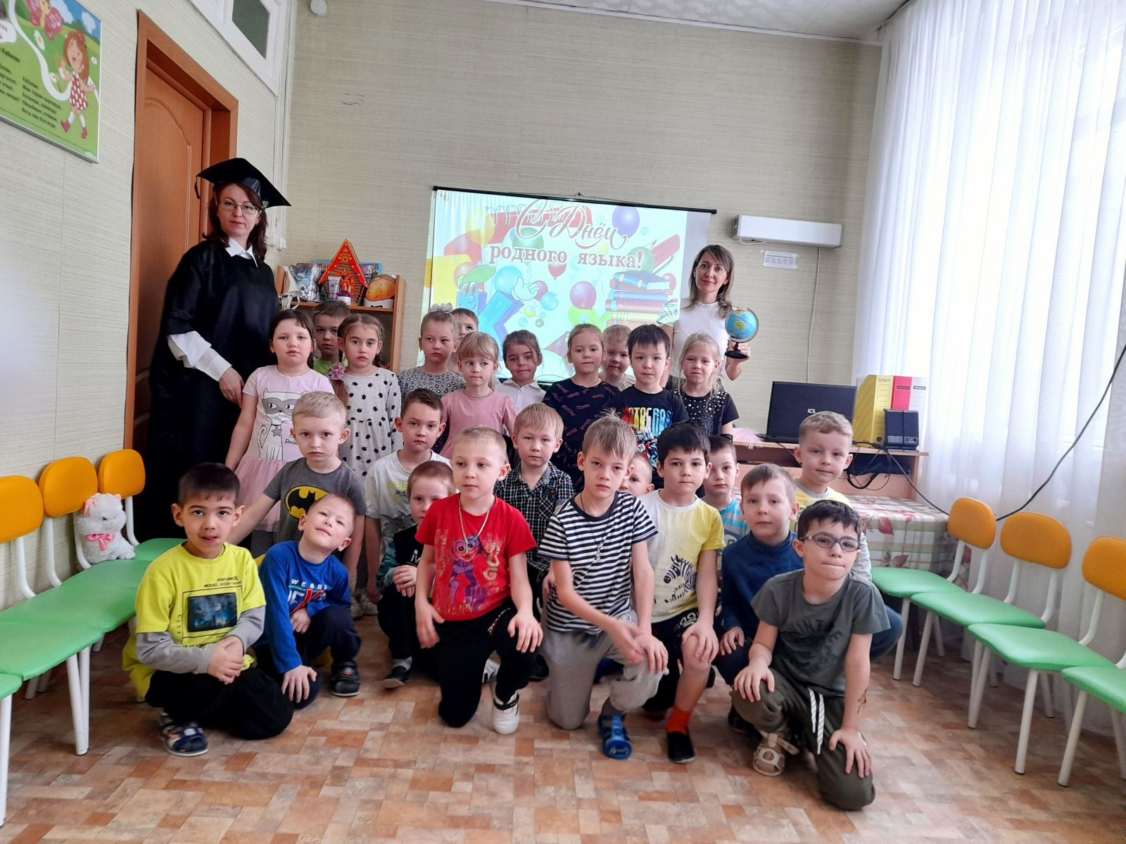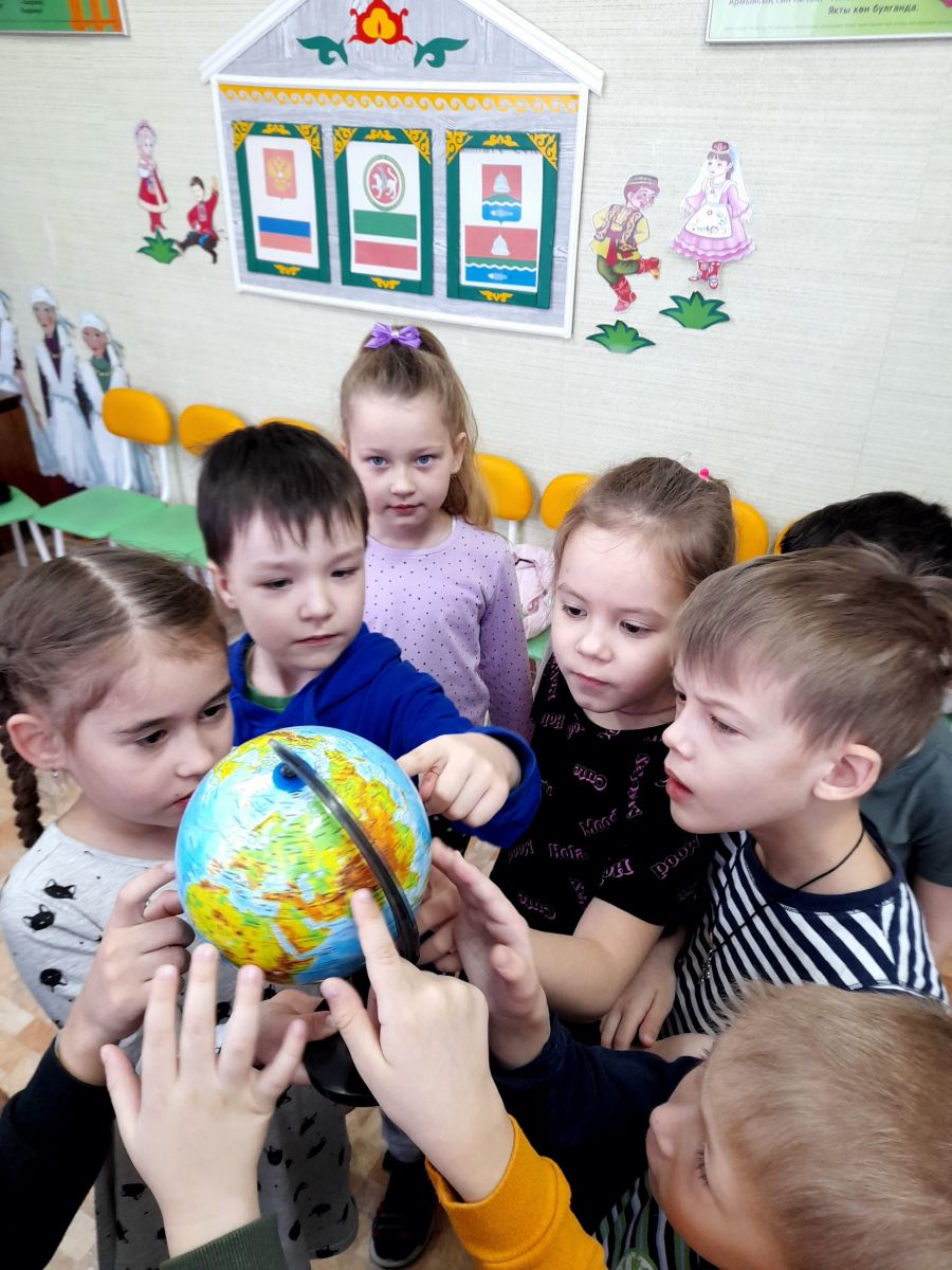 Дети узнали о многообразии языков на планете, о том, что родной язык — это характер народа, его память, история, духовное могущество. Познакомились с глобусом — маленькой моделью земного шара, узнали на глобусе много стран, у каждой из которых свой национальный язык, культура, наследие.