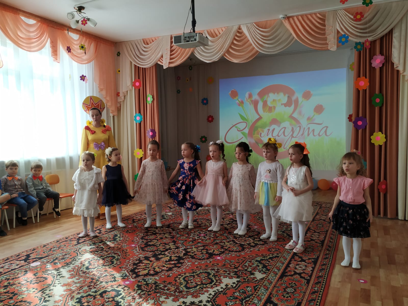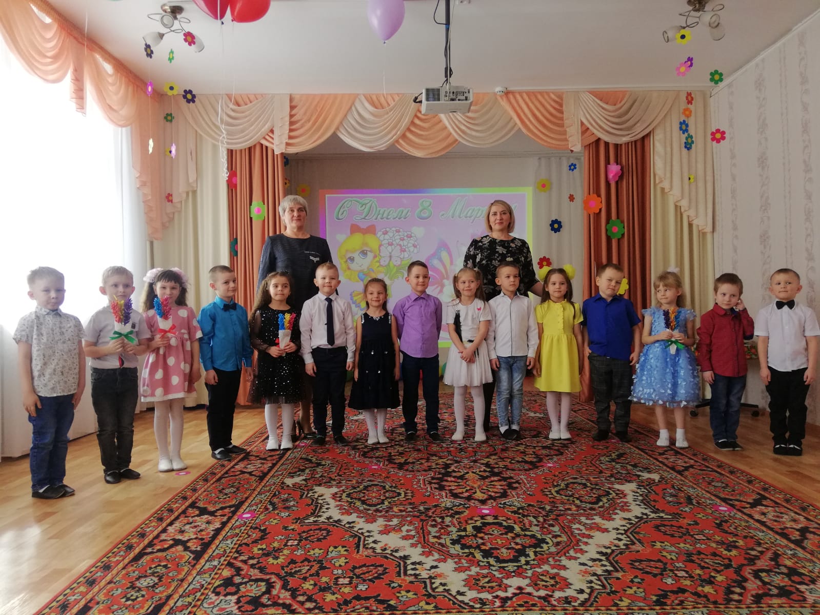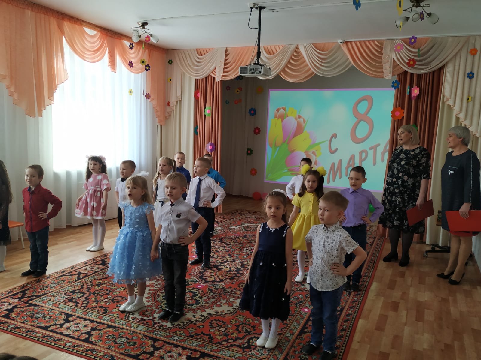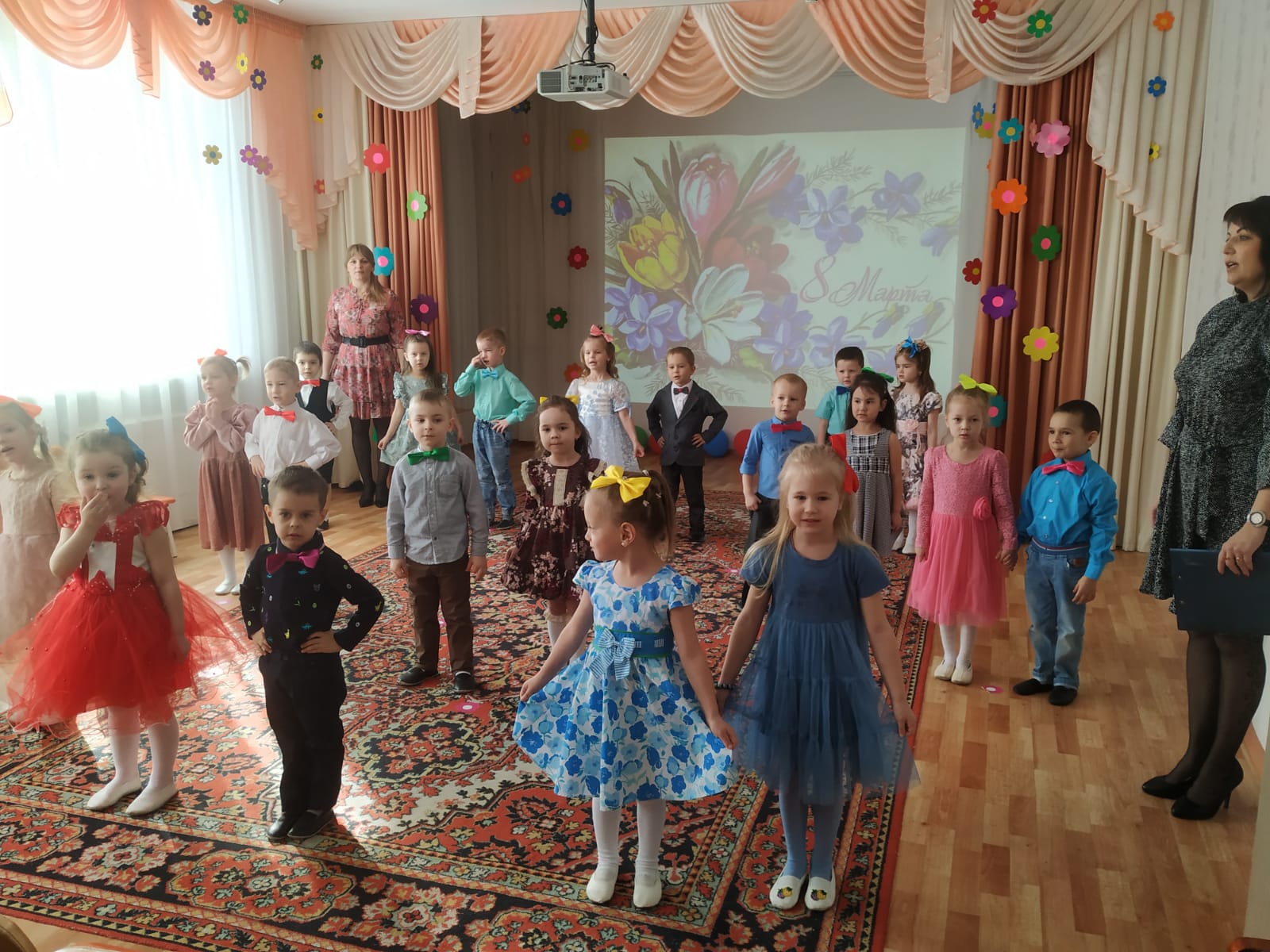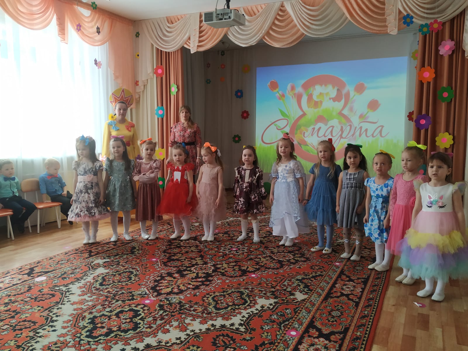 3 марта поздравления с праздником принимали мамы и бабушки детей из групп «Капельки», «Ромашки», «Солнышки» и «Почемучки».