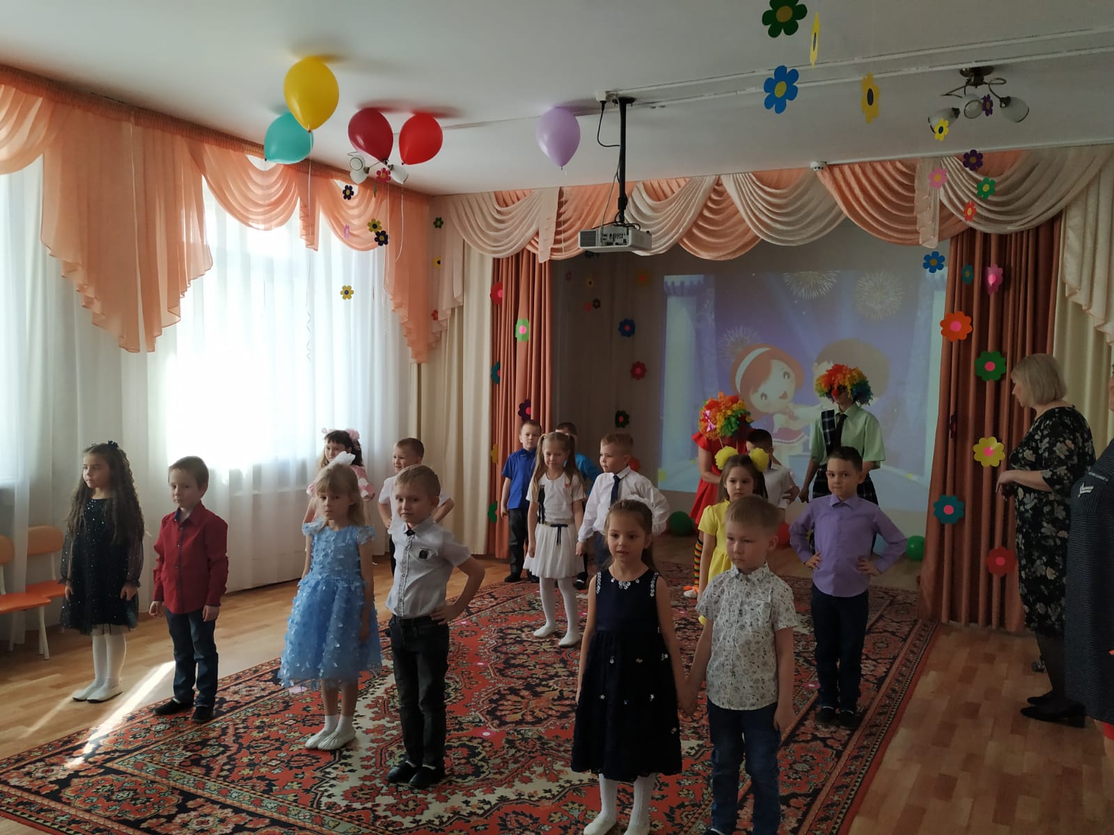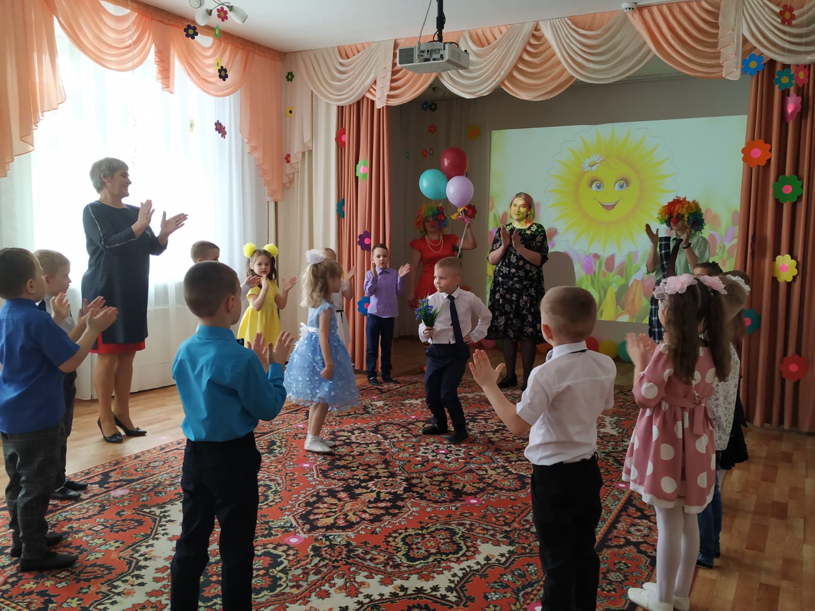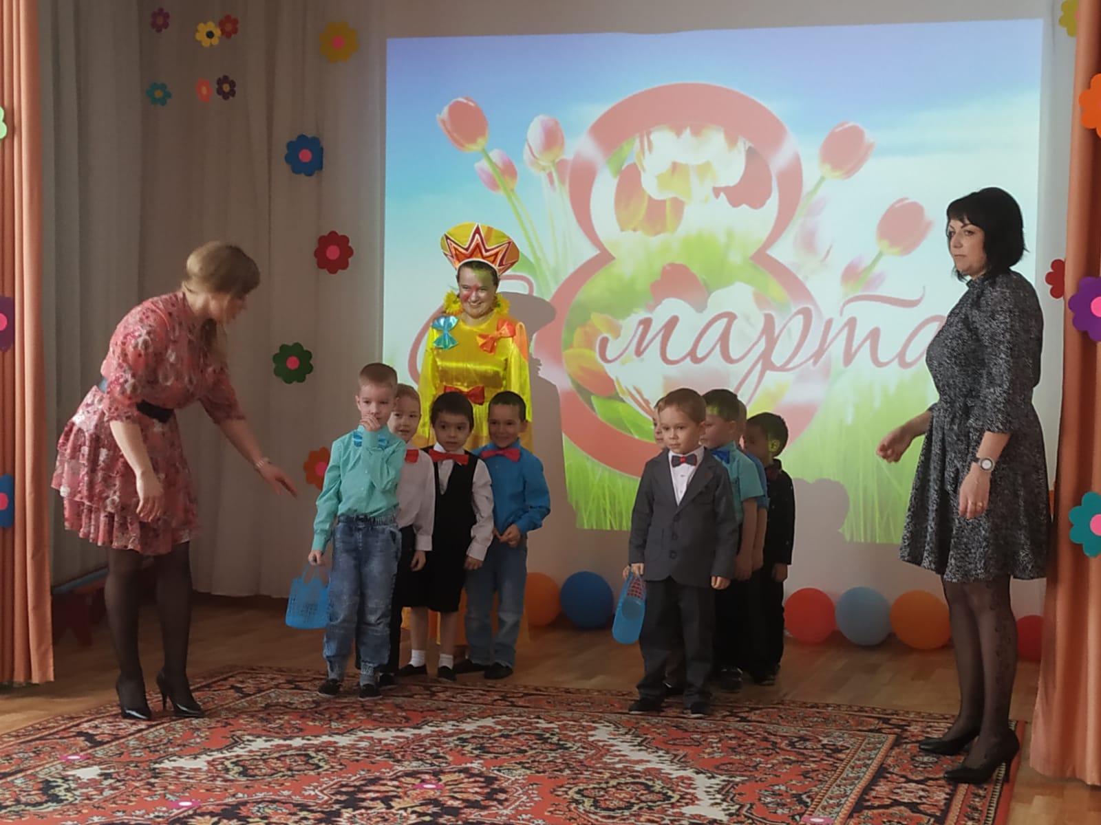 Вместе с ребятами они танцевали, участвовали в весёлых играх, аттракционах и исполняли желания мам и бабушек.