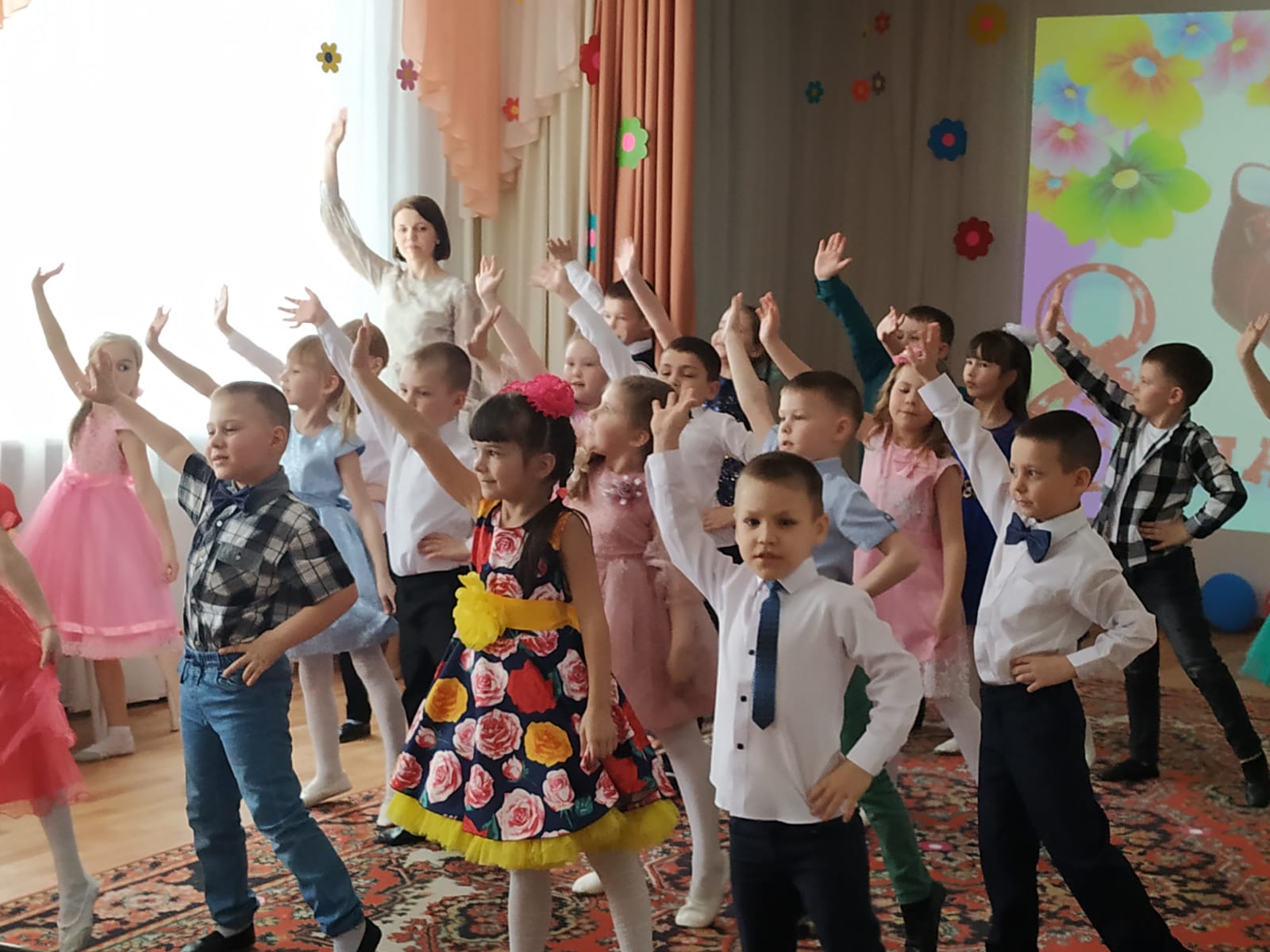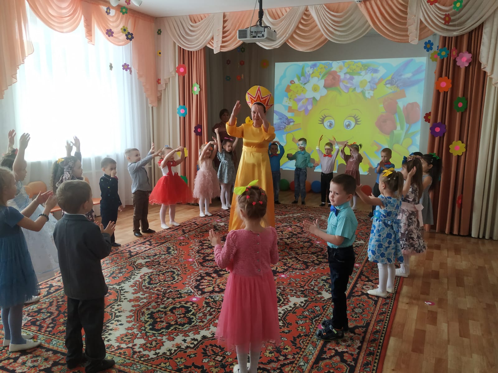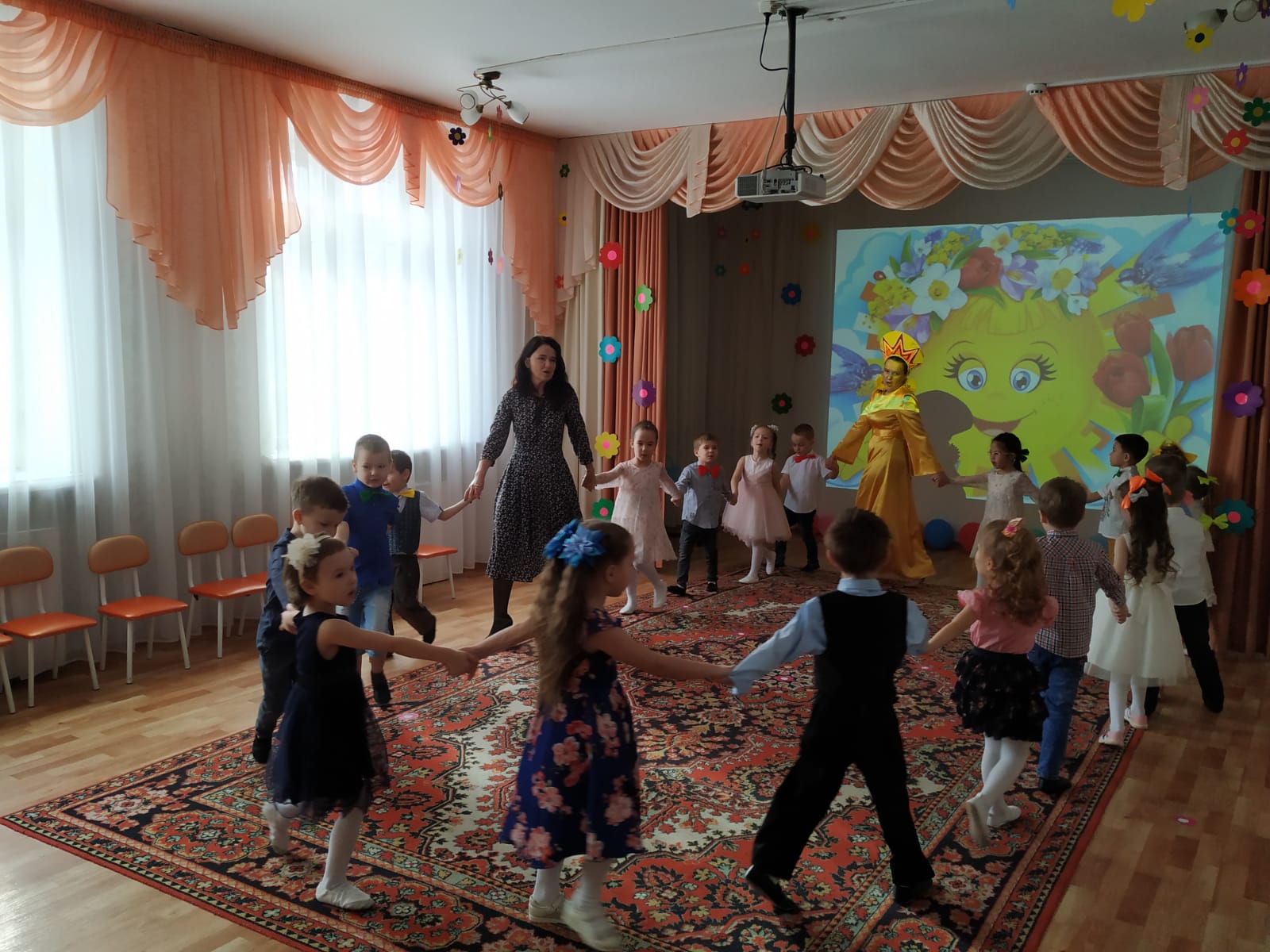 Вместе с ребятами они танцевали, участвовали в весёлых играх, аттракционах и исполняли желания мам и бабушек.