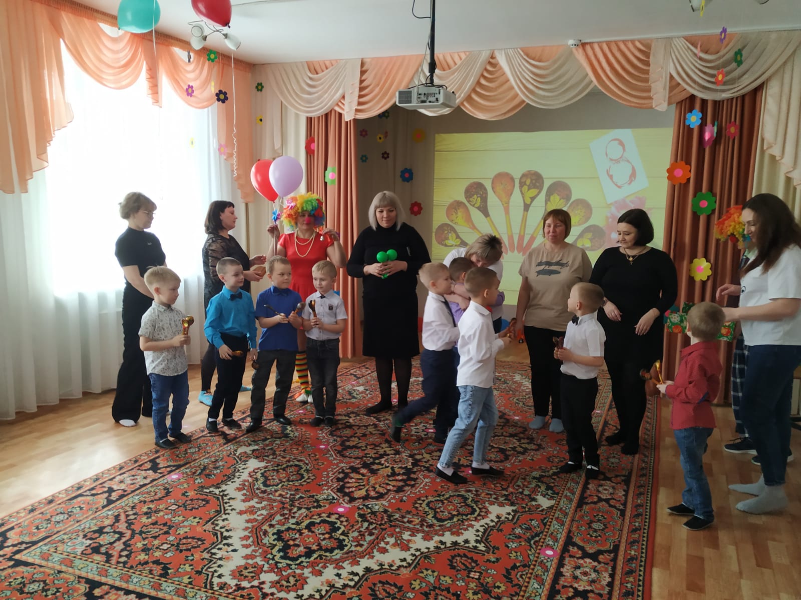 В гости к ребятам и мамам при ходили весёлые клоуны, которые помогли провести праздник ещё интереснее и веселее.