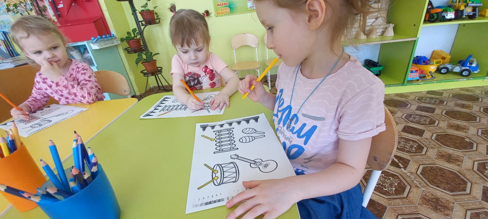 В рамках тематической «Недели театра и музыки для детей» через беседы о театре и сказке воспитатель (Тихонова К.Б.) расширяла знания детей о том, что сказку можно не только читать, смотреть, но и играть. Играя в пальчиковые игры, дошколята развивают мелкую моторику рук; рассматривая иллюстрации к русским народным сказкам, малыши учились внимательно рассматривать детали рисунка: героя сказки, его костюм, атрибутику и т.д.; знакомясь с разными видами театра (настольный, кукольный), дети рассматривали ширмы для кукольного театра и театра игрушек. С интересом ребята изучали музыкальные инструменты и с удовольствием играли на них. Закрепляя новые знания, воспитанники раскрашивали тематические раскраски, таким образом, развивая и мелкую моторику, и творческие способности. Тематическая неделя проходит очень весело, интересно и плодотворно.
