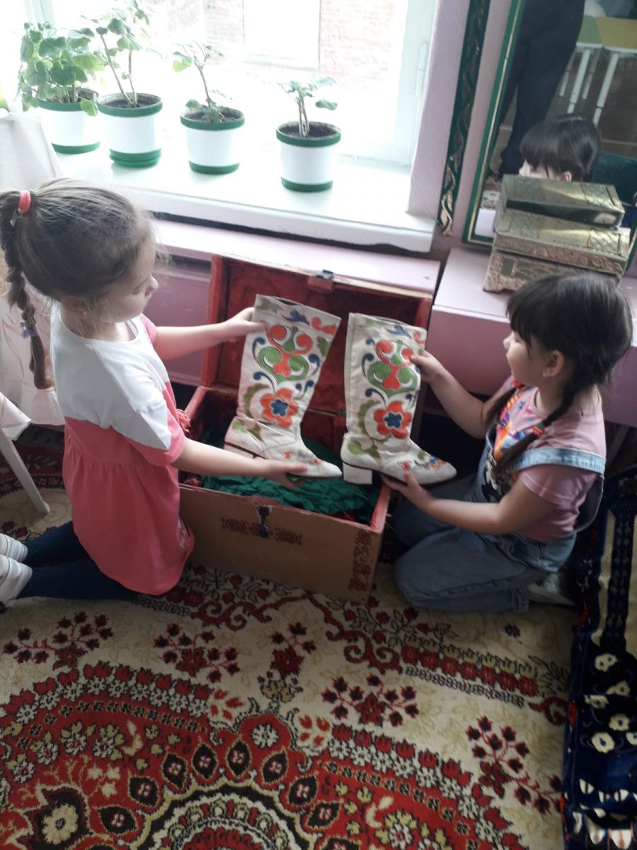 На протяжении тематической недели «Человек в окружении вещей» воспитатели группы «Ляйсан» (Ганеева З. Г., Фаттахова Л. С.) расширяли представления детей о разнообразии одежды. Ребята рассматривали «коллекцию» разных тканей сравнивая их между собой. Ребята сами попробовали изобрести каждый свою ткань нетрадиционными техниками рисования. Познакомились с историей одежды, обуви, головных уборов и современным их производством, узнали, как изменялась одежда со временем. Всю неделю мы играли с вырезанными куклами, придумывали для них одежду и мастерили своими руками.