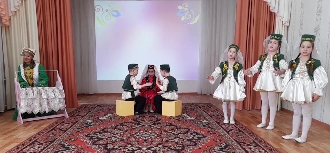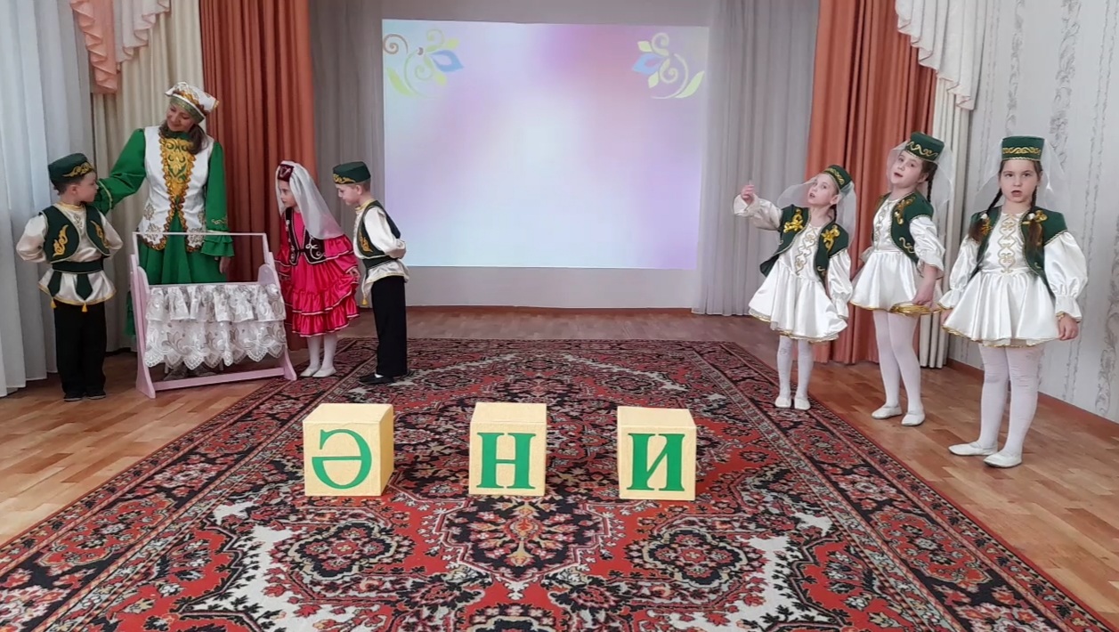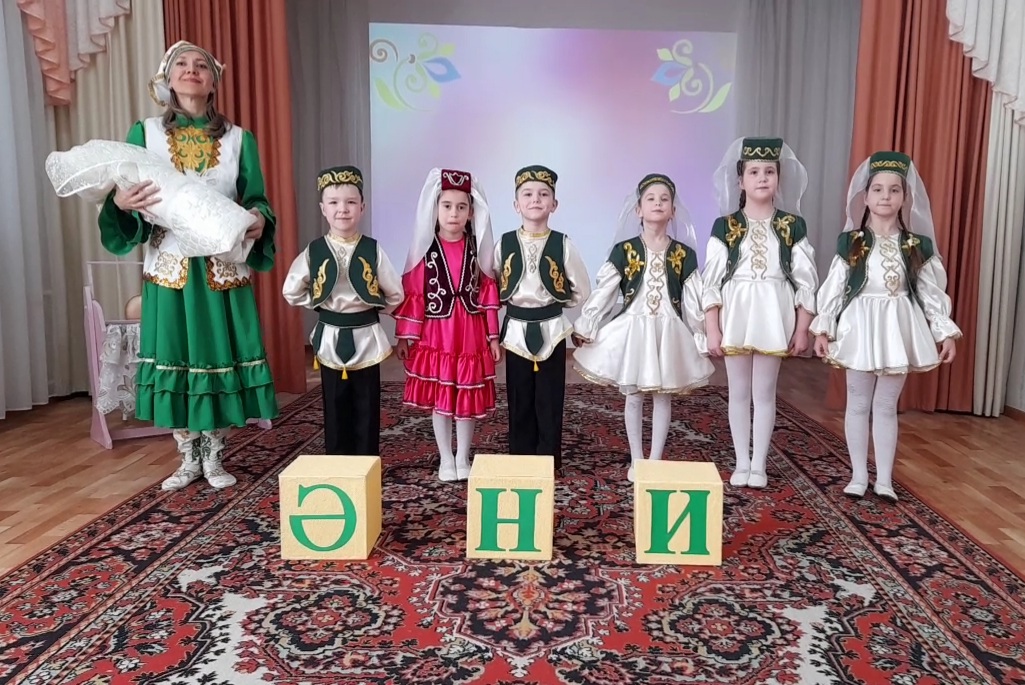 А представляли наш детский сад ребята подготовительной к школе группы «Почемучки» (Кузнецовы Алёна и Настя, Звягинцева Карина) и старшей татарской группы «Ляйсан» (Скибин Кирил, Латыпов Тимур и Зардинова Сабрина). Номер подготовили: музыкальный руководитель — Шарагина Наталья Владимировна, воспитатель татарской группы «Ляйсан» — Ганеева Зухра Галимовна и воспитатель по обучению татарскому языку — Бадреева Эльвира Ильдаровна. Была объявлена тема конкурса «Родина, близкие люди», поэтому для выступления выбрали и проинсценировали песню на татарском языке «Энием ж,аным син» («Мама — душа моя»).