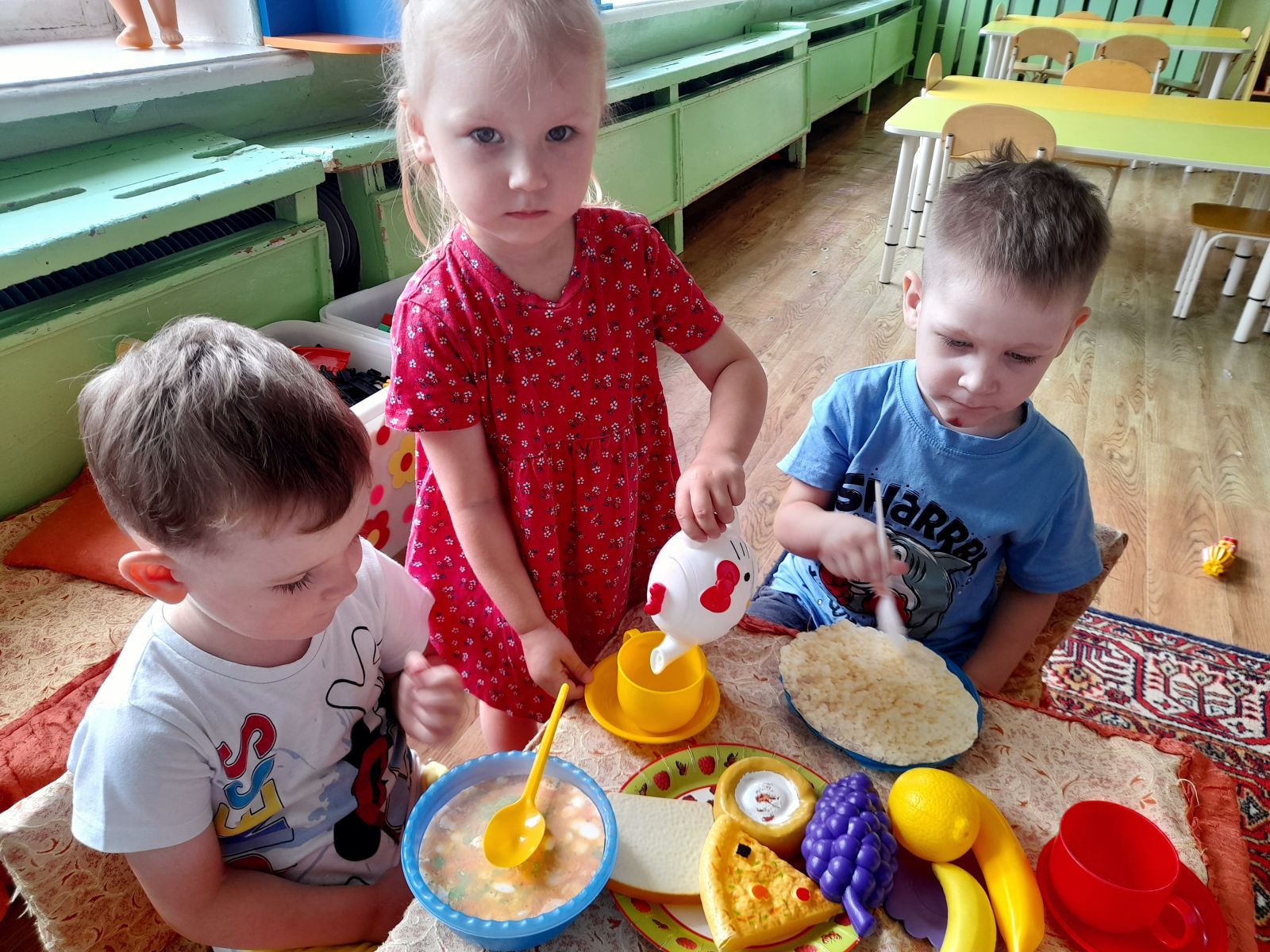 С детьми поговорили о доброте, вспомнили вежливые слова, провели беседу о том, что такое добрые дела, какие бывают и для чего они нужны. Поговорили о том, как они помогают дома мамам и папам, также в саду воспитателям и младшим воспитателям. Также обратили внимание детей на взаимопомощь среди друзей.
