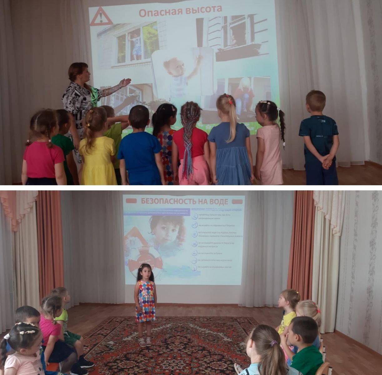 В игровой форме воспитатель рассказала воспитанникам о правилах поведения в различных жизненных ситуациях. Ребята с радостью отгадывали загадки, рассматривали иллюстрации, рисовали картинки на темы безопасного поведения у водоёмов, на дороге, дома, на детских площадках, во время прогулок.
