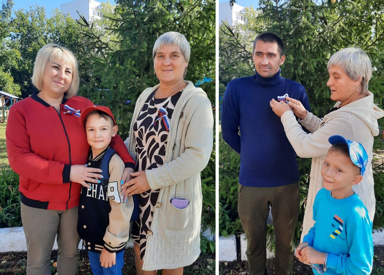 Подготовительная к школе группа "Радуга" (воспитатели Бажитова Е.Н., Мосолова Е.П.) присоединились к акции "Российский триколор", которую проводили волонтеры Победы: накануне они раздали ленточки жителям города в цветах флага России, а наши ребята вместе с воспитателями изготовили ленточки сами и раздавали их родителям наших воспитанников.