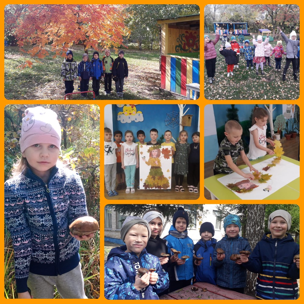 Дети рисовали «Осеннюю берёзовую рощу», работали с книжками-раскрасками «Времена года, рассматривали иллюстрации, осенние пейзажи, как звери готовятся к зиме. Педагоги провели с ребятами беседу, где обобщили и систематизировали представления о сезонных изменениях в природе, вспоминали народные приметы, знакомились с пословицами по теме недели. Играли в различные подвижные игры «К дереву, беги!», «Листопад, листопад», «Поймай листок»; дидактические игры «Найди самый красивый листок», «Узнай дерево по листочку». Во время прогулки мы узнали какие грибы растут на участке нашего детского сада. Сравнивали их внешнее строение, цвет, место произрастания, трогали на ощупь. Для самостоятельной деятельности детей были предложены настольно-печатные игры по теме недели.