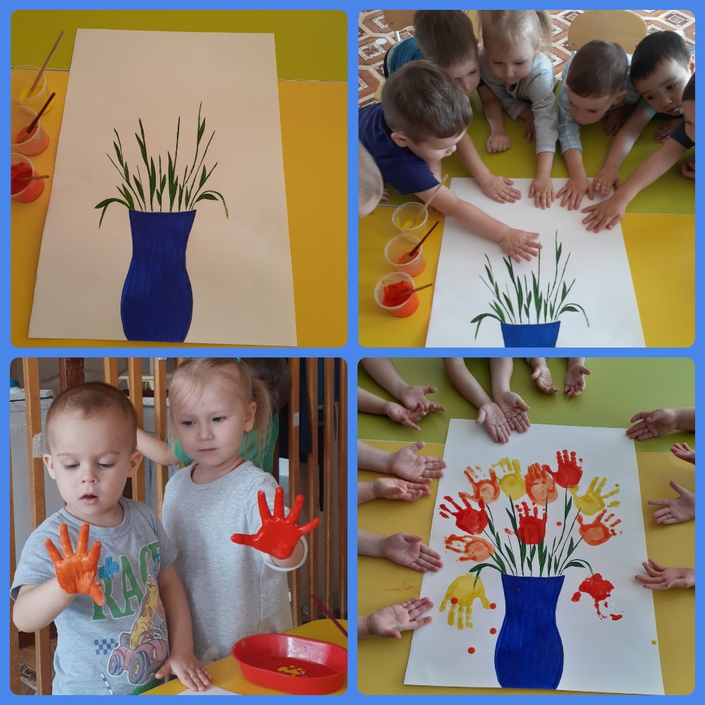 В рамках тематической недели "Осень. Сезонные изменения" во второй младшей группе "Почемучки" (воспитатели Губина Л.В., Морякова Т.И.) была выполнена коллективная композиция "Осенние цветы" в нетрадиционной технике рисования. Рисование ладошками — это всегда интересный, увлекательный и зрелищный процесс, который способствует развитию детей.