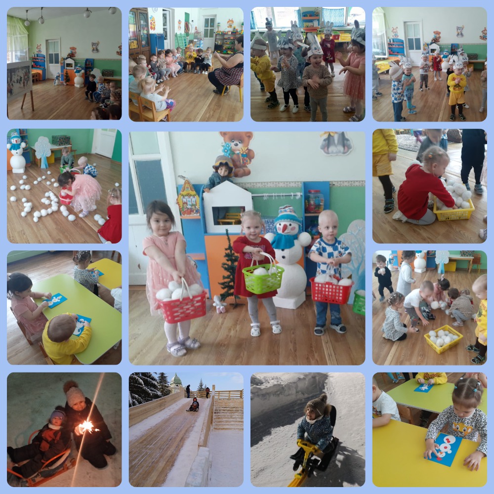 24.01.2024 г. В группе "Капельки'' (воспитатели Моргачева Н., Савина О.А.) проходит тематическая неделя "Зимние забавы". Если погода не позволяет малышам погулять на улице, мы организуем забавы в группе.